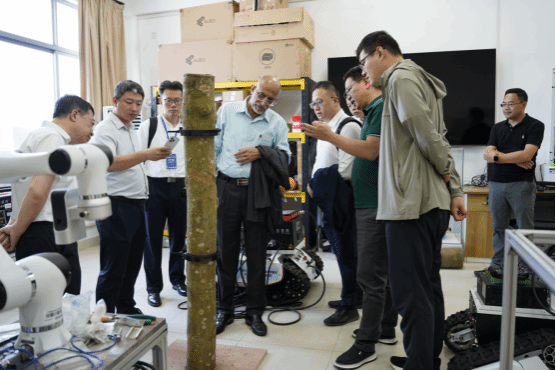 张喜瑞向Ahmad Parveez Ghulam Kadir一行演示了自主研发的固定式全自动割胶机。该设备采用自适应仿控深切割技术,可根据橡胶树表面起伏自动调整割胶刀进刀深度实现毫米级精准切割。 Ahmad Parveez Ghulam Kadir先生表示,马来西亚作为橡胶和棕榈油生产大国,非常需要这样的智能化装备,期待与pa电子官方网站建立长期合作关系。张喜瑞回应道:pa电子官方网站愿意分享在热带农业机械领域的经验,期待与马方共同研发更适合东南亚气候的智能装备。