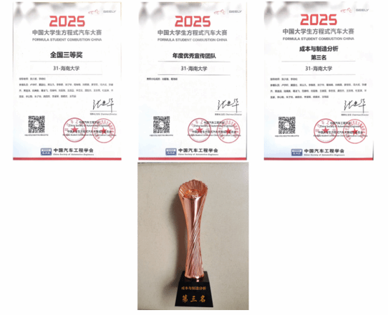 在本次赛事中,pa电子官方网站南海方程式赛车队凭借扎实的技术积累与出色的团队协作,荣获全国三等奖,在成本分析与制造项目中更是取得了全国第三名的突破性成绩。同时,车队凭借专业的宣传内容,荣获了赛事组委会颁发的“年度优秀宣传团队”称号。